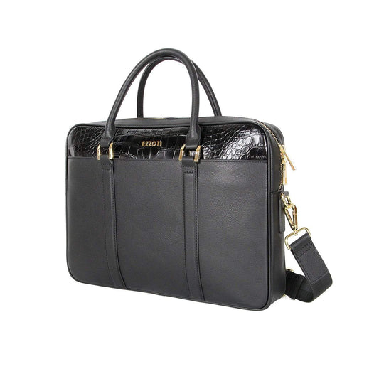 Milan Soft Grain and Crocodile Embossed Leather Briefcase